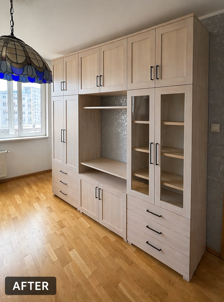 Iga mööblilahendus sünnib ruumi ja inimese vajadusi arvestades. Enne/Pärast vaade näitab, kuidas üks hästi läbimõeldud kapp võib muuta kogu toa ilmet ja kasutusmugavust.